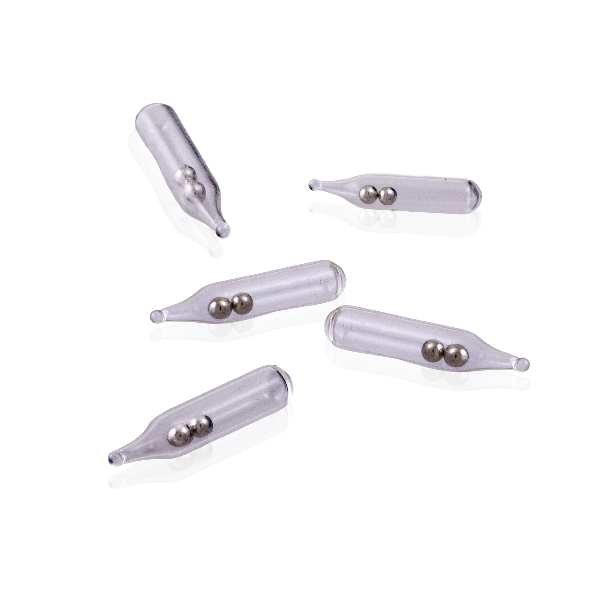 Rasselkammare i pyrex glas med två stålkulor